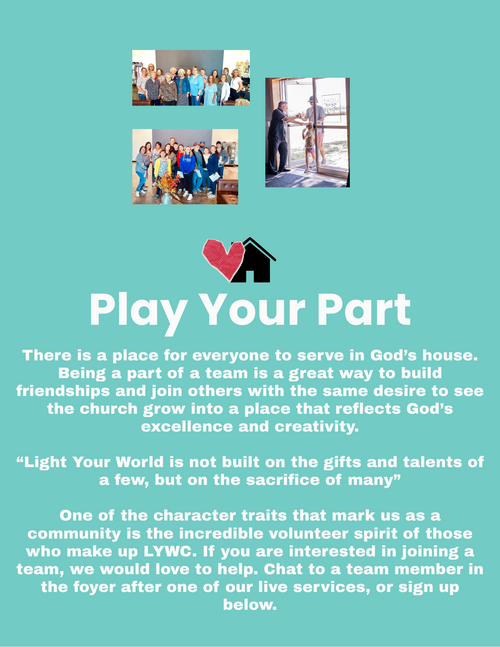 Light Your World Church is a place where people can meet Jesus, engage in life-giving community, and everyone is welcome. We believe in creating a space where people can have authentic encounters with Christ, discover their gifts and use them for God's glory. Join us for our Sunday services!